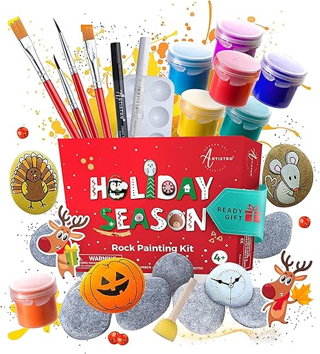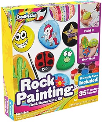 10 variety of rocks 6 color paints 6 metallic paints 2 GID paints halloween stickers GID and colorful googly eyes 2 paint brushes 1 sponge instruction poster. XXTOYS Rock Painting Kit for Kids - Arts and Crafts for Girls Boys - Glow in The Dark Rock Painting - Craft Art Kit -Hide and Seek Activities Great Craft Creative Gift for Ages 4-8 44 out of 5 stars 328 1599 15. This rock painting kit is recommended for ages 6 - 96.