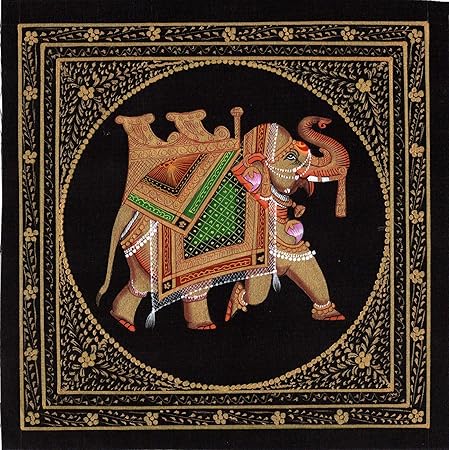 Amazon Com Indian Elephant Ethnic Decor Art Handmade Miniature Udaipur Silk Animal Painting Posters Prints