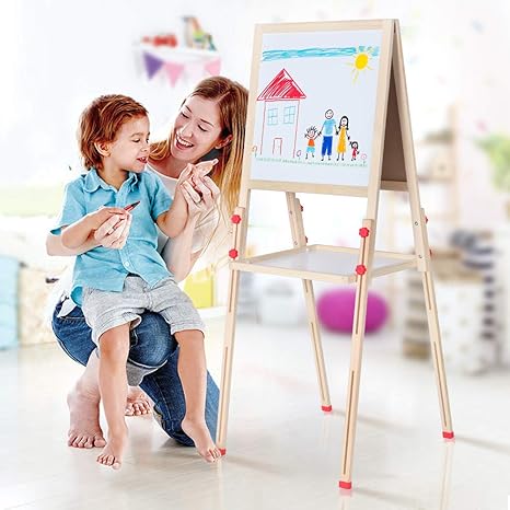 COSTWAY 3-in-1 Wooden Kids Art Easel Double Sided Easel Blackboard Whiteboard with Paper Roller and Storage Box Children Educational Toys Gifts 42 out of 5 stars 4 7695 76. Arkmiido Wooden Art Easel Get your childs creative juices flowing with this 3-in-1 easel. As they scribble with chalk on the blackboard and play with markers in the whiteboard they can also use paper rolls on top of it to create beautiful art pieces.