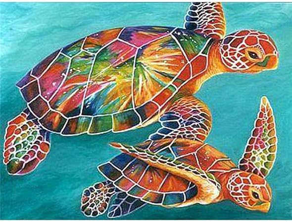 Amazon Com Diy Oil Painting Paint By Number Kits Colored Turtle 16x20 Inch