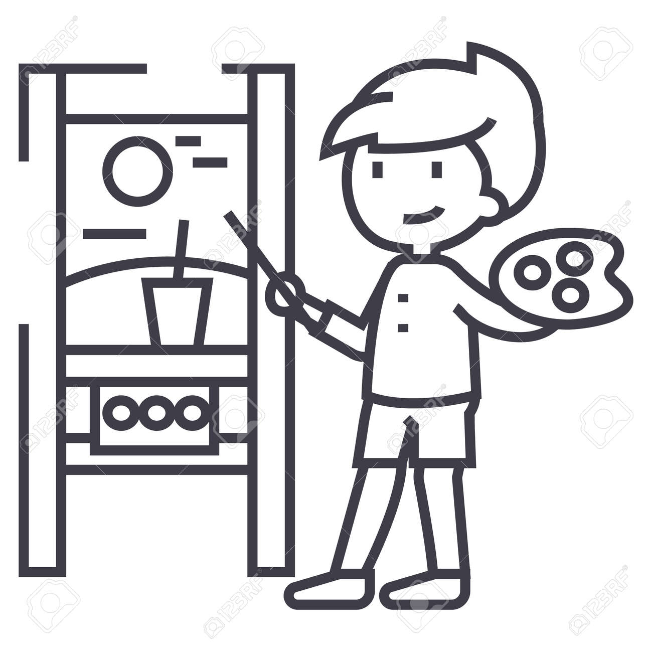Boy Drawing Picture Molbert Vector Line Icon Sign Illustration Royalty Free Cliparts Vectors And Stock Illustration Image 87221509
