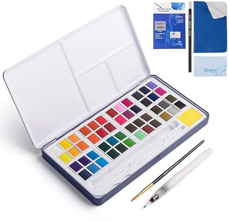 Amazon Com Watercolor Paint Set 48 Color High Pigment Watercolor Paint Vivid Color Cube 2 Brush Pencil Mixing Palette 8 Paper Sheet Ideal For Kids Beginner Student Home Improvement